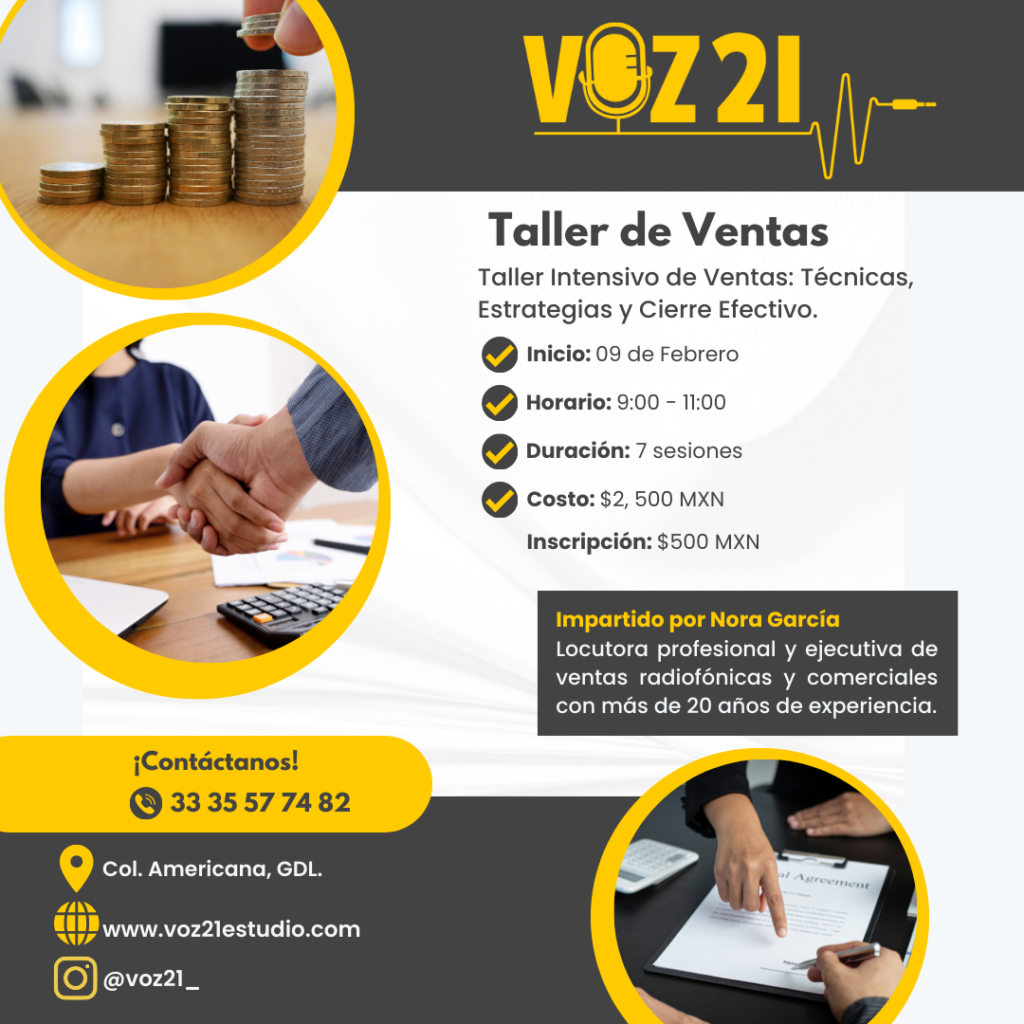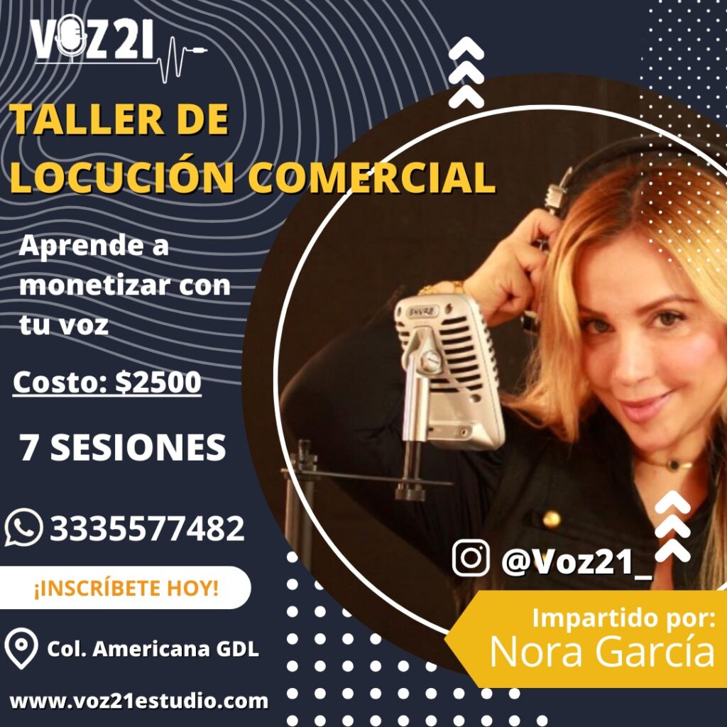 Impartido por Nora García, locutora profesional y ejecutiva de ventas radiofónicas y comerciales con más de 20 años de experiencia.