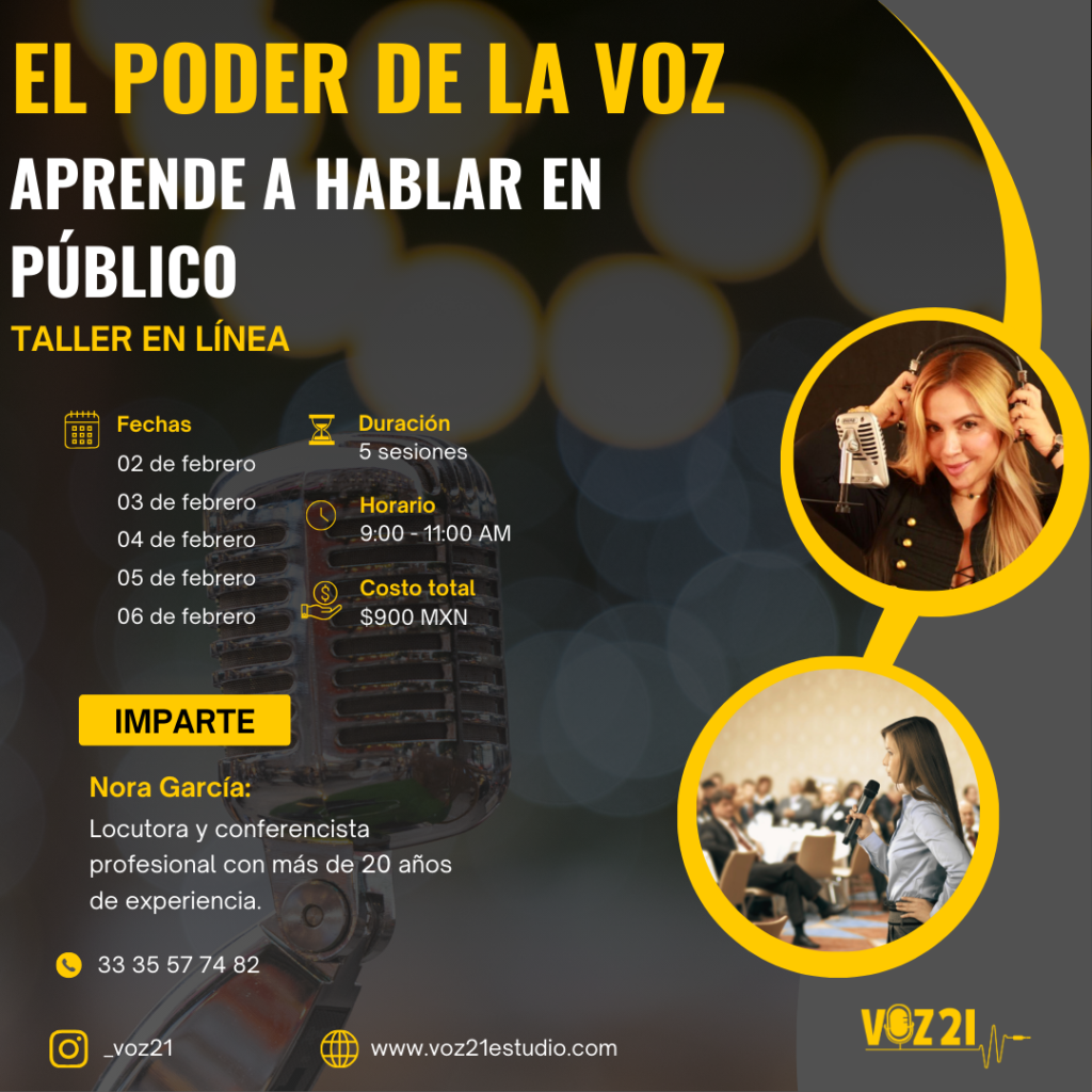 Impartido por Nora García, locutora y conferencista profesional con más de 20 años de experiencia